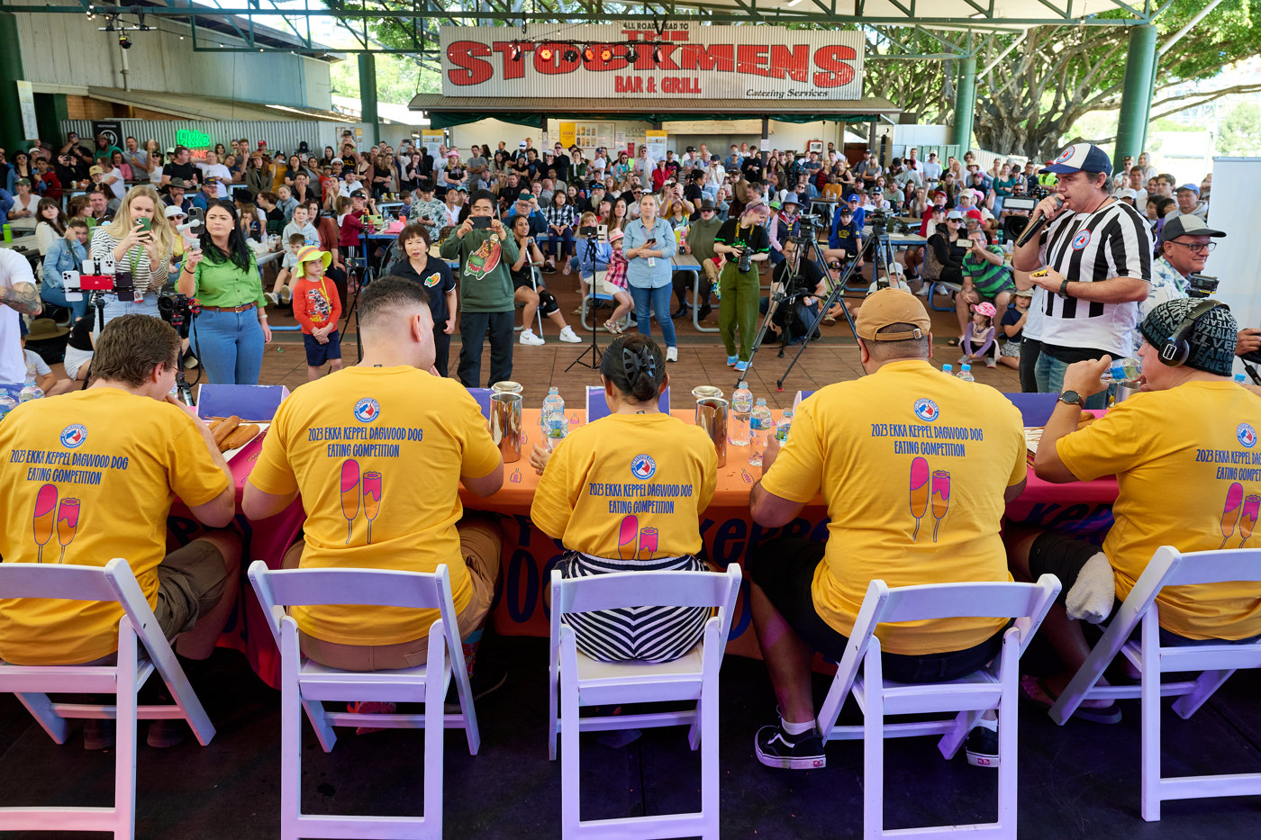 It’ll be man versus food when competitors face off in Ekka’s Keppel Dagwood Dog Eating Competition.